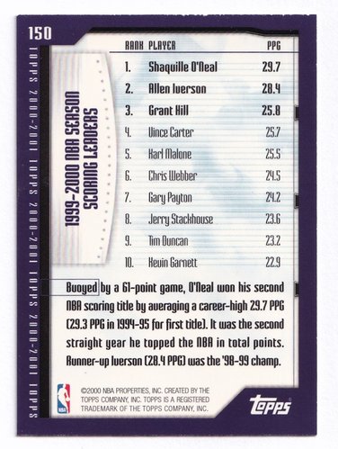 2000 Topps Season Leader Allen Iverson O'Neal Hill #150
