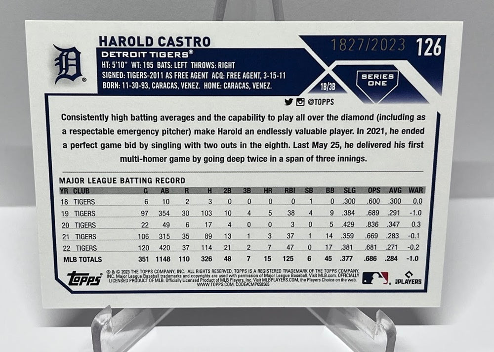 2023 Topps Series One Harold Castro Detroit Tigers 1827/2023 #126